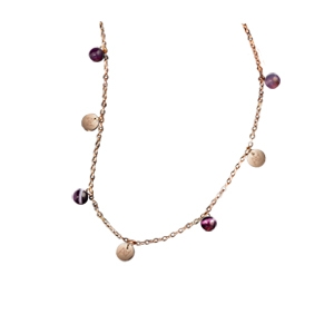 - Material des Armbands Rosefarbener Edelstahl und achatsteinen violetten